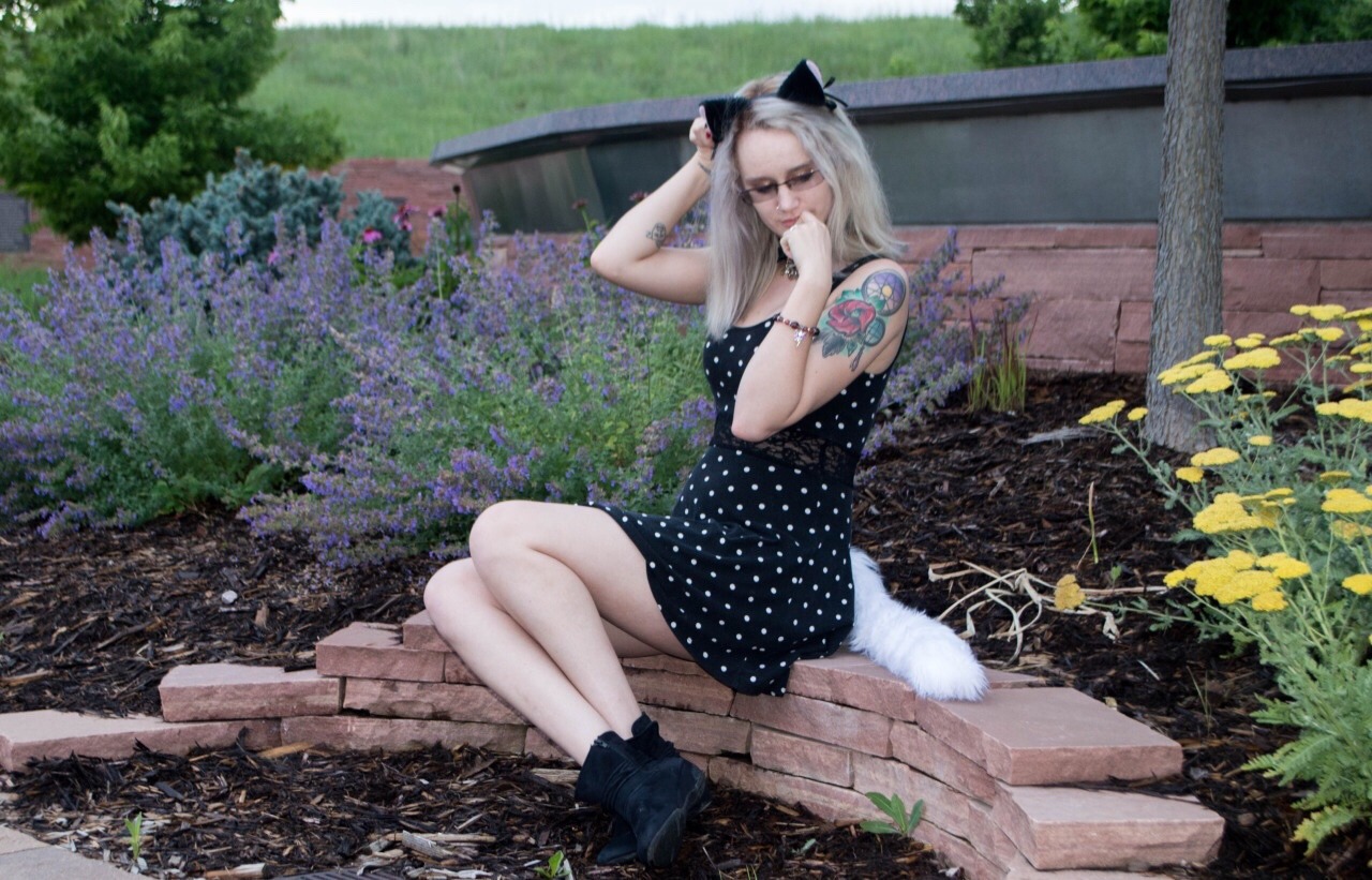 More-White-Less-Black Furry Tail Anal Plug with White-Black Headdress
